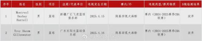 此前吉伦沃特被查出在24-25赛季期间违规服用兴奋剂,虽然尚未对他做出处罚措施,但可想而知其的CBA生涯已经结束,从而只能投奔其他联赛。