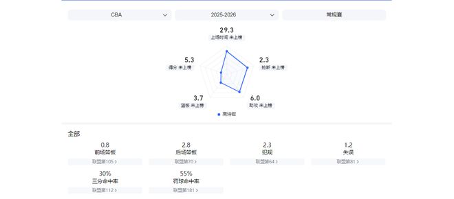数据层面:本赛季6次出场后,高诗岩场均仅能为山东男篮贡献5.3分,投篮命中率低至28.6%。