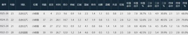 本赛季至今,久疏战阵的曾凡博仅出战8场首发4次,场均上阵23.1分钟,得到9.6分2.5板1.4助1.1断,三项命中率38.7%、30.8%和68%,依然在努力找回最佳竞技状态。