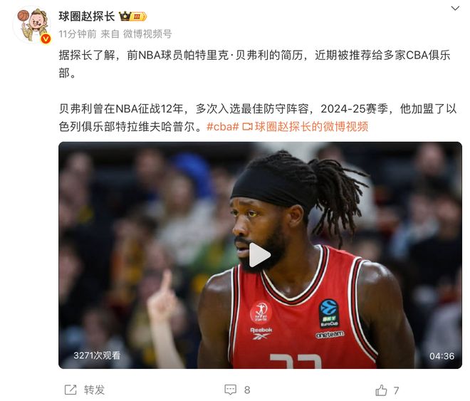原文写道:据探长了解,前NBA球员帕特里克·贝弗利的简历,近期被推荐给多家CBA俱乐部。