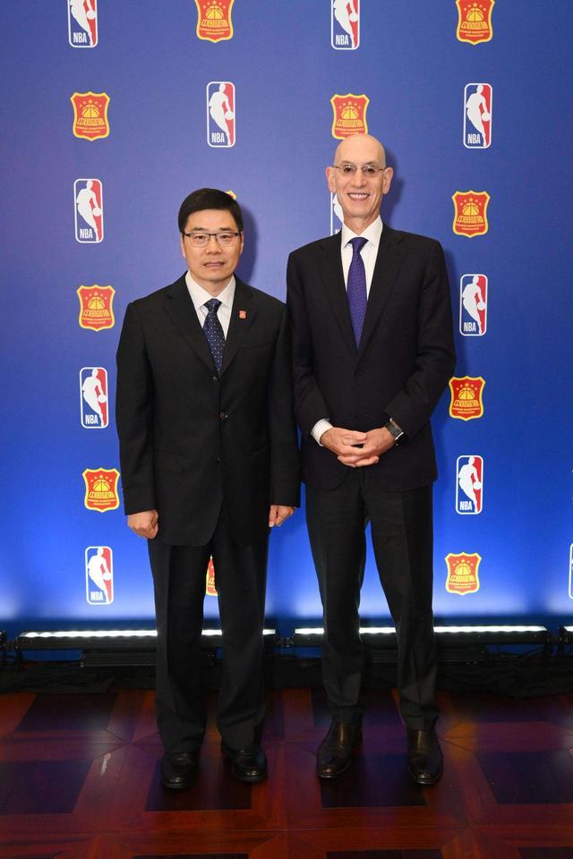 中国篮球协会主席郭振明(左)和NBA主席亚当·萧华(右)