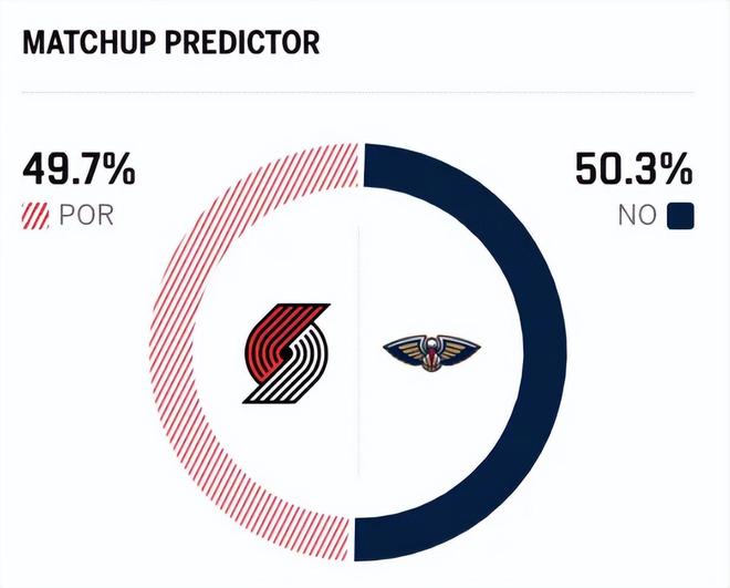 赛前,美媒ESPN对本场比赛进行了胜率预测,开拓者胜率仅有49.7% ,略占劣势,鹈鹕队胜率则意外高达50.3%。