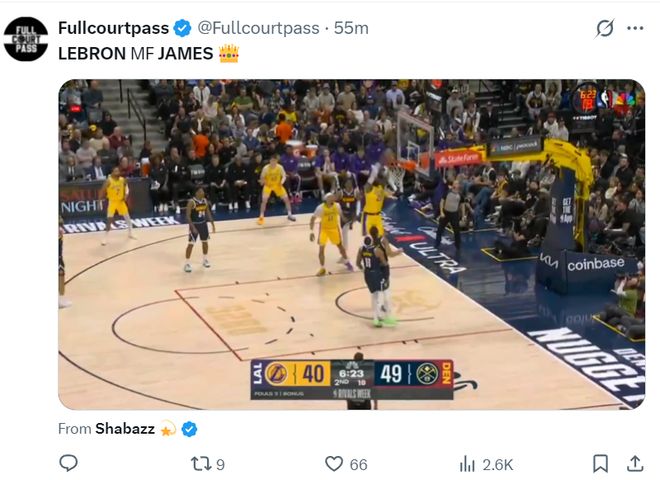 41岁仍能平框暴扣!勒布朗在场+13助湖人重返第六轰19+9+8超全面