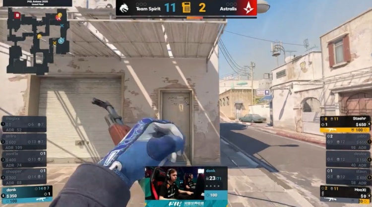 5月18日讯 PGL阿斯塔纳终于迎来最终决赛,由Astralis对阵Spirit!图一Dust2上半场Spirit先攻,donk在多回合中打出双杀与三杀,并在第4局双杀独自打开B区缺口。Spirit多点开花,choppe