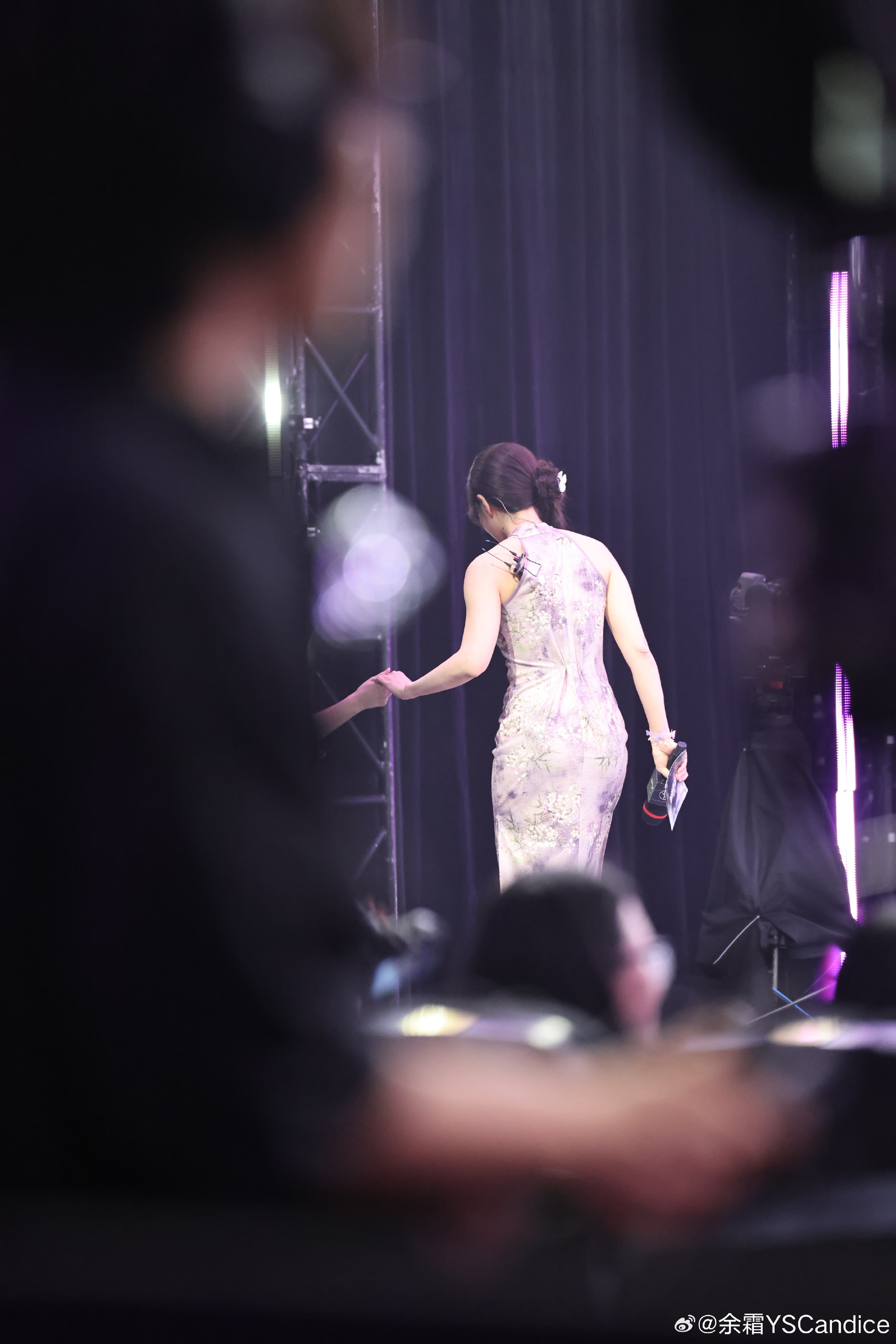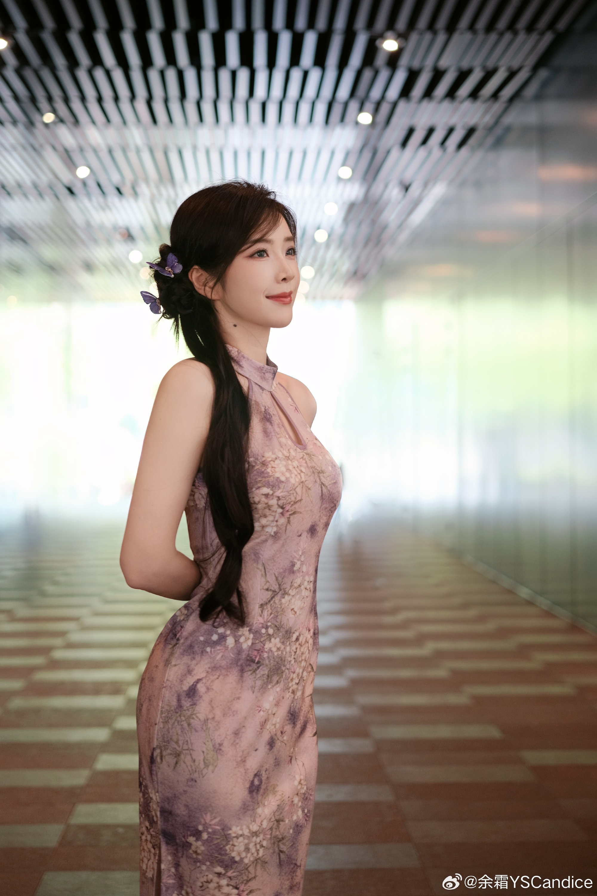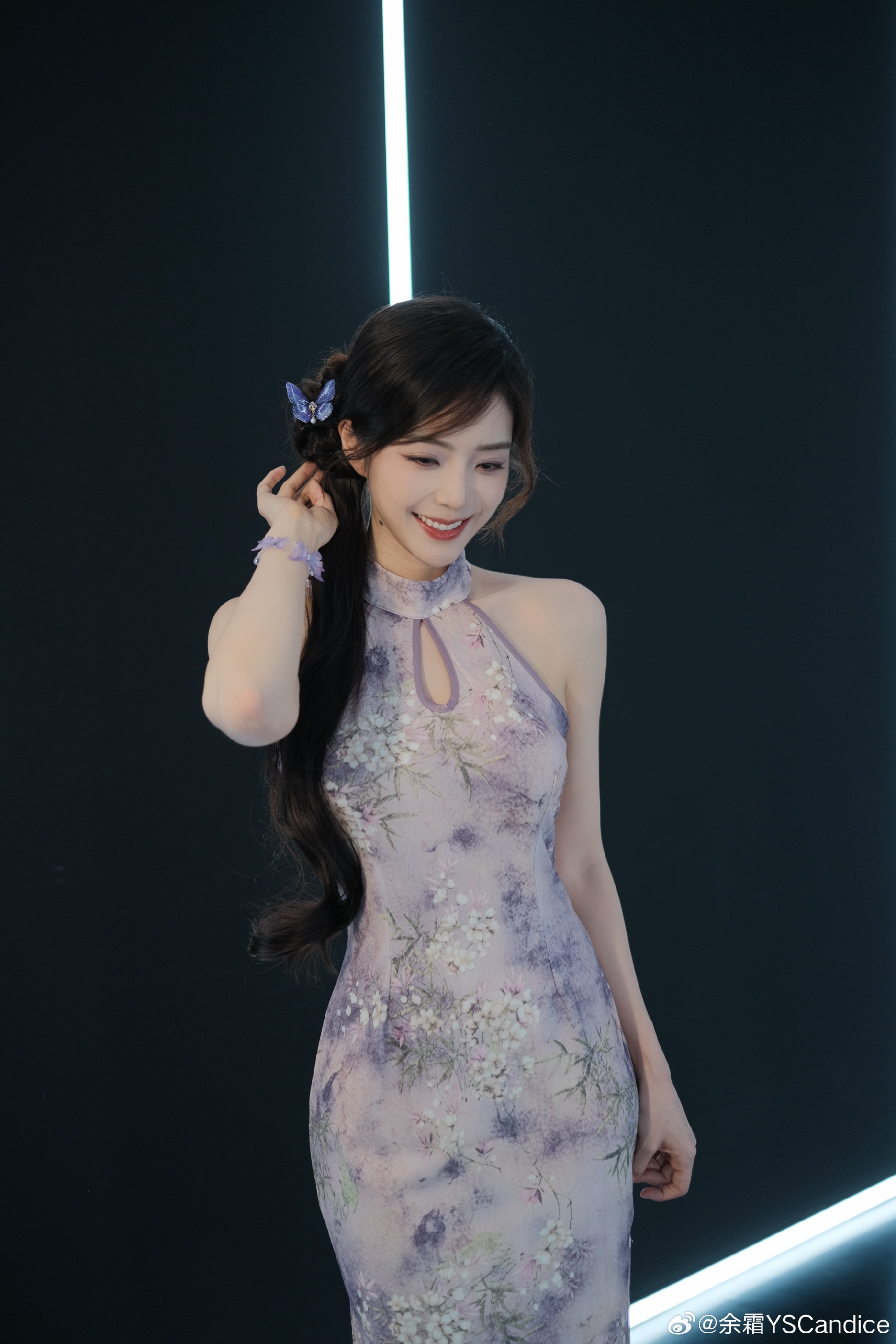 余霜分享今日LPL现场工作照:夏日云霞,暮紫凝烟”灵魂莲华旗袍