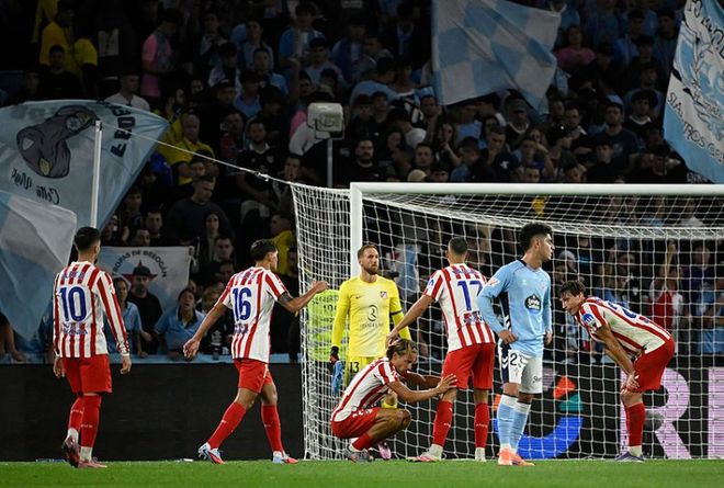 北京时间10月6日凌晨,西甲第8轮,塞尔塔坐镇主场迎战马德里竞技。图片来源:视觉中国上半场第6分钟,塞尔塔球员斯塔费尔特在禁区内解围时,不慎将球踢进自家球门,马竞1-0塞尔塔,下半场