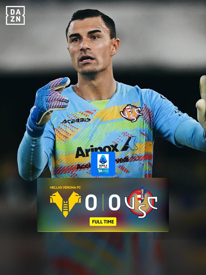 无解!印尼国门奥代罗单场9次扑救,助克雷莫纳闷平维罗纳
