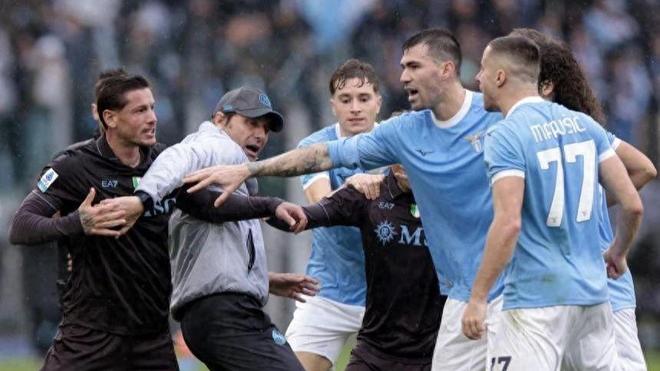 孔蒂冲入球场平息混战!那不勒斯20拉齐奥,三张红牌引爆意甲