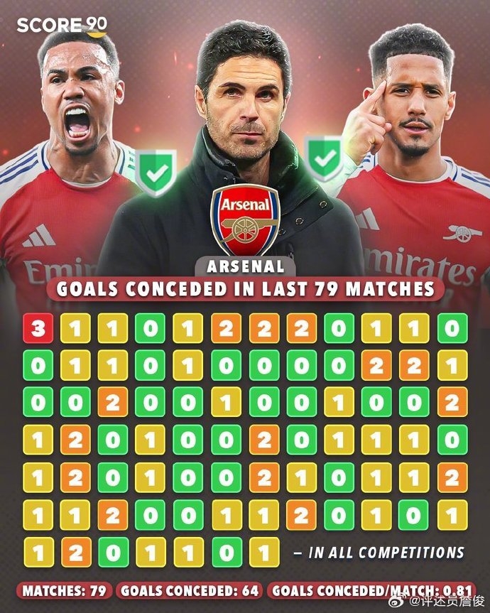 詹俊:阿森纳已78场比赛未单场丢3球周三能否捍卫领先闯入四强