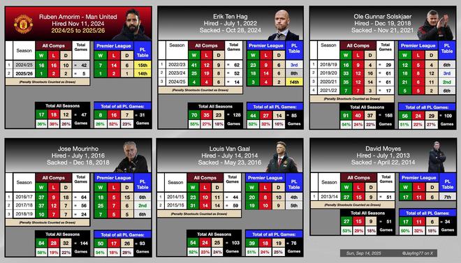 阿莫林执教的球队在本赛季英超前四场比赛中仅取得一场胜利,而在卡拉宝杯(联赛杯)中点球大战负于格里姆斯比,更是让球队和主帅陷入了令人震惊的低谷。