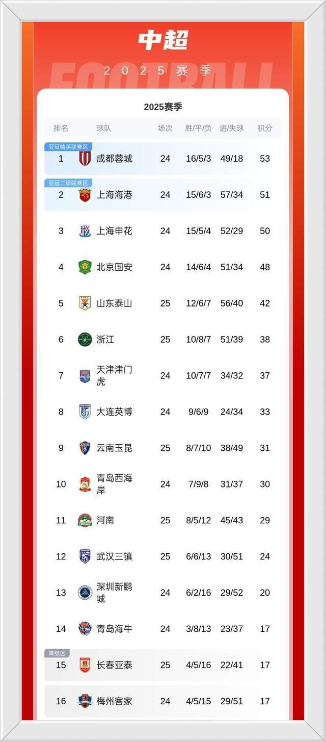 中超第25轮进入最后一个比赛日。