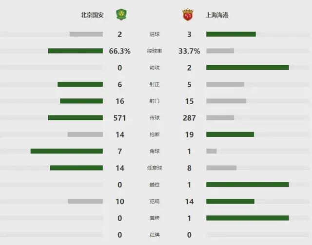 结果全场比赛,国安空有66.3%的控球率,2-3败北。
