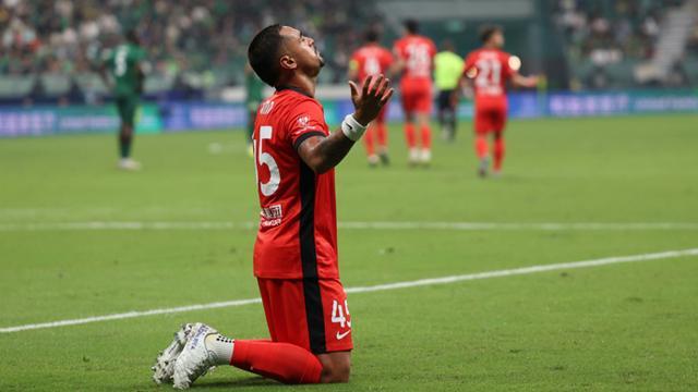6月14日,河南俱乐部酒祖杜康队球员费利佩·卡多索在比赛中庆祝进球。 当日,在河南郑州举行的2025赛季中国足球超级联赛第14轮比赛中,河南俱乐部酒祖杜康队主场3比2战胜成都蓉城队。 新华社 发