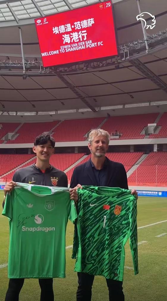 海港门将颜骏凌和偶像范德萨交换球衣。